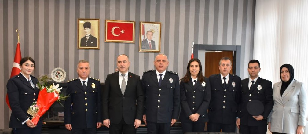 Kaymakam Ümit Altay, Türk Polis Teşkilatımızın 181. kuruluş yıl dönümü ve Polis Haftası münasebetiyle; İlçe Emniyet Müdürü Mithat Öztaş, Havalimanı Şube Müdür Vekili Başkomiser Erhan Karagöz ve beraberindeki polis memurlarını makamında kabul etti.