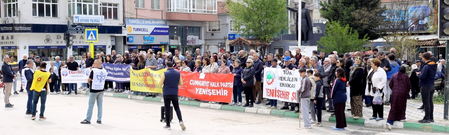 CHP Yenişehir İlçe Başkanı Deniz Dörtkardeş ve yönetim kurulunun da destek verdiği eylemde, Platform bileşenleri arasında Eğitim Sen, Tüm Emeklilerin Sendikası, Eğitim-İş, Hürriyetçi Eğitim Sen, Teç-Sen, Eğitim Gücü Sen, Kristal-İş ve Yenişehir Çevre Platformu temsilcileri yer aldı.