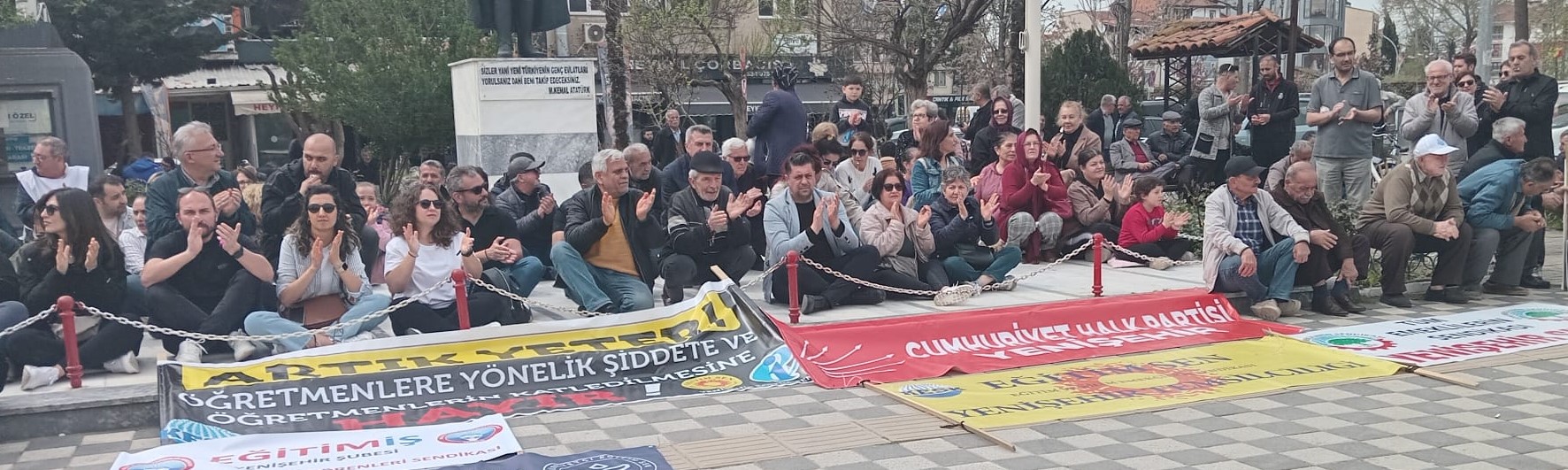 Bursa’nın Yenişehir ilçesinde, son dönemde Türkiye’nin farklı illerinde okullarda yaşanan şiddet olaylarına tepki göstermek amacıyla Yenişehir Emek ve Demokrasi Platformu tarafından oturma eylemi ve basın açıklaması düzenlendi. Atatürk Heykeli Meydanı’nda gerçekleştirilen eyleme yüzlerce vatandaş katıldı.